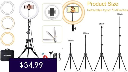 14" Outer diameter Ring Light, 60 inches Centimeters Light Stand, Universal Adapter with US Plug, Smart Phone Holder, Bluetooth Remoter, Carry Bag. Promise 12 month warranty.
